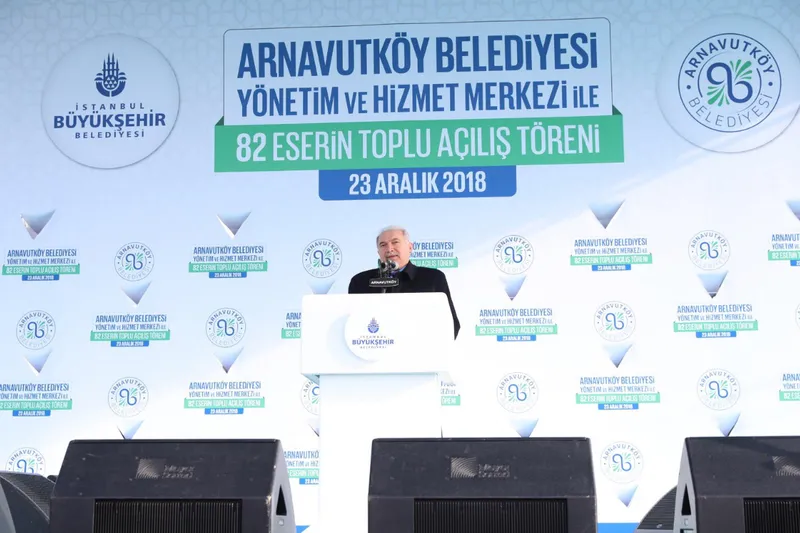 Arnavutköy'e kazandırılan 82 eser için toplu açılış töreni düzenlendi. Arnavutköy Belediyesi önünde düzenlenen törene Cumhurbaşkanı Recep Tayyip Erdoğan, Çevre ve Şehircilik Bakanı Murat Kurum, AK Parti Genel Başkan Yardımcısı Hayati Yazıcı, AK Parti Sözcüsü Ömer Çelik, İstanbul Valisi Ali Yerlikaya, İstanbul Büyükşehir Belediye Başkanı Mevlüt Uysal, milletvekilleri, İstanbul AK Parti İl Başkanı Bayram Şenocak, Arnavutköy Belediye Başkanı Ahmet Haşim Baltacı, ilçe belediye başkanları ve binlerce vatandaş katıldı.