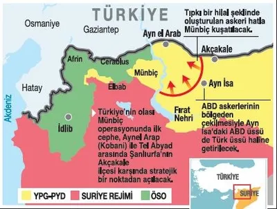 Genelkurmay karargahında kurulan özel bir ekip uzun soluklu çalışma sonrası Suriye'deki askeri harekat stratejisini tamamladı. İlk olarak hedefte Münbiç olacak. Oluşturulan 5 aşamalı Münbiç yol haritasına "sıcak plan" adı verildi.