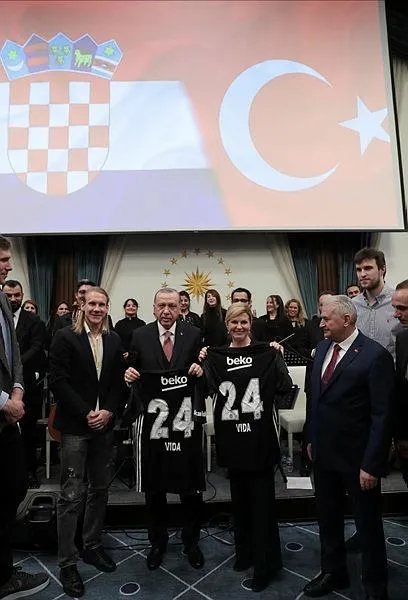 Cumhurbaşkanı Recep Tayyip Erdoğan, Hırvatistan Cumhurbaşkanı Kolinda Grabar Kitaroviç onuruna resmi akşam yemeği verdi. Yemekte, TBMM Başkanı Binali Yıldırım, Beşiktaşlı oyuncu Damagoj Vida ve Beşiktaş Sompo Japanlı basketbolcu İvan Buva da yer aldı. Yemeğin ardından Vida, her iki lidere de forma hediye etti.