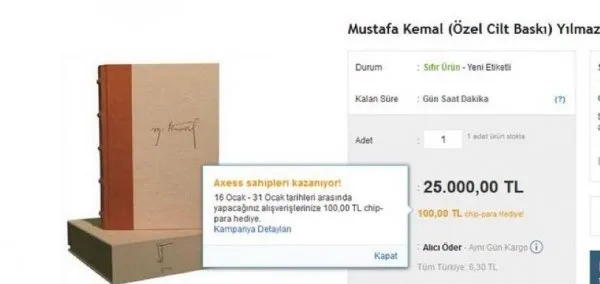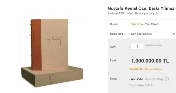 Alışveriş sitelerinde 5 bin, 20 bin, 25 bin, 50 bin liraya satışa çıkartılan kitaplar, 1 milyon liraya kadar fiyatlandırılarak satışa sunulmuş durumda. 2 bin 500 liradan satışa çıkartılan tartışmalı kitaplar ile Atatürk ve Kemalizm üzerinden maddi çıkar sağlanmaya devam ediliyor.