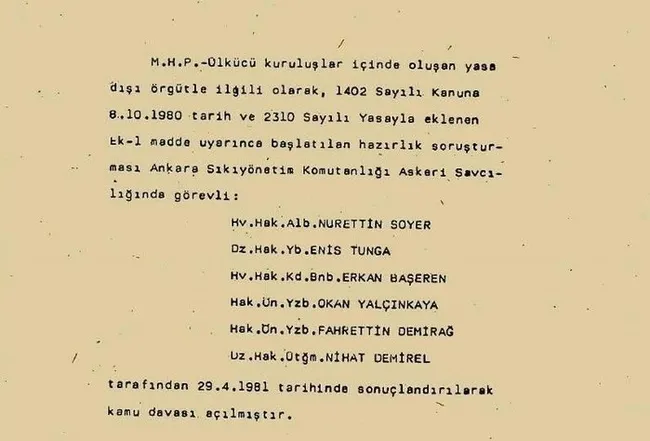 İşte Soyer'in 12 Eylül darbesinde Alparslan Türkeş ve Ülkü Ocakları hakkında hazırladığı iddianameden bölümler;