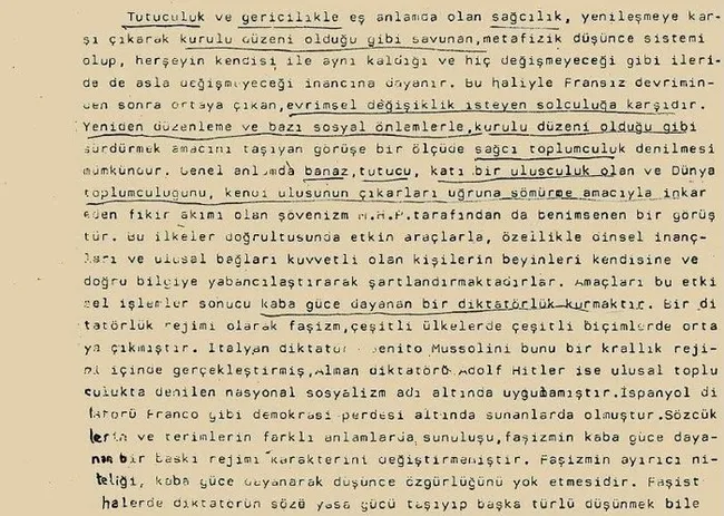 CHP ve İP'in İzmir Adayı Tunç Soyer'in babası Nurettin Soyer, 12 Eylül'deki İddianamede ülkücülüğü böyle tanımlamış: "Ülkücülüğün amacı kaba güce dayanan bir diktatörlük kurmaktır."
