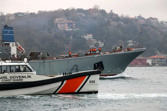 Rusya'nın Karadeniz filosuna ait 'Caesar Kunikov ' ve 'Azov' adlı savaş gemileri Karadeniz'den İstanbul Boğazı'na giriş yaptı.Savaş gemilerinden çok sayıda askerin güvertede boğaz kıyısını izlediği bazı askerlerin ise geminin ön ve arka kısmında silahlı nöbet tuttuğu görüldü.
