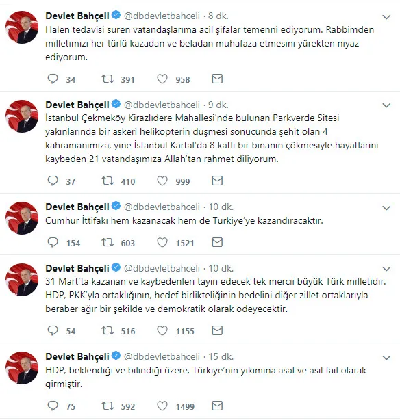 İşte Bahçeli'nin Twitter'dan yaptığı o paylaşımlar: