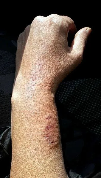 Van'da izinsiz yürüyüş yapmak isteyen HDP milletvekillerinden Saliha Aydeniz, açtığı pankartı almaya çalışan kadın polis memurunun kolunu ısırdı.