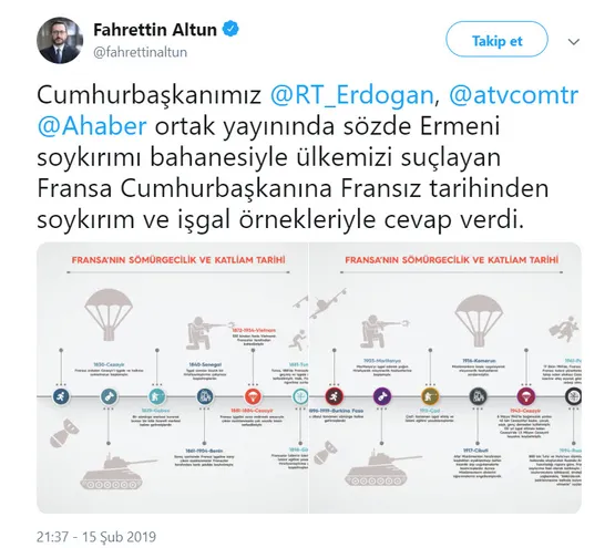 Türkiye Cumhuriyeti Cumhurbaşkanlığı İletişim Başkanı Fahrettin Altun da konuyla ilgili bir tweet paylaştı.