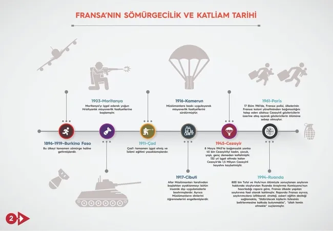 Fransa'nın sömürgecilik ve katliam tarihi grafiklerle anlatılıyor.