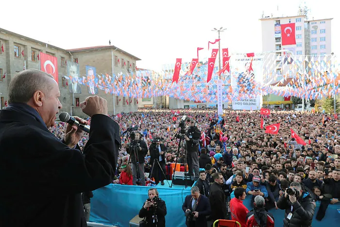 Yere iyi basıyoruz, güçlü basıyoruz. Birelerinin oyuna gelmek yok. Savunma sanayinde Türkiye tarihinde en büyük hamlesini bizim dönemimizde yaptı. Göreve geldiğimizde yüzde 80 ithaldi. Şimdi tamamen bu dışa bağımlılığı yüzde 35'e kadar düşürdük. Türkiye savaş gemisini, helikopterini, İHA, SİHA, füzelerini, bombalarını, silahlarını kendisi üretiyor. PKK, DEAŞ, FETÖ'ye kadar tarihlerinin en ağır darbelerini vuruyoruz. Gabar, Cudi, Tendürek, Kandil'de biz varız. İnlerine girdik inlerine! Kaçacak delik arıyorlar. Şimdi de 735 tane teröristi güvenlik güçlerimiz yakaladı, şimdi bunlar hesaba çekiliyor.