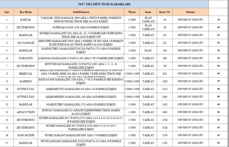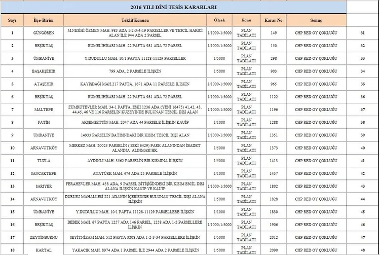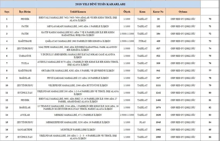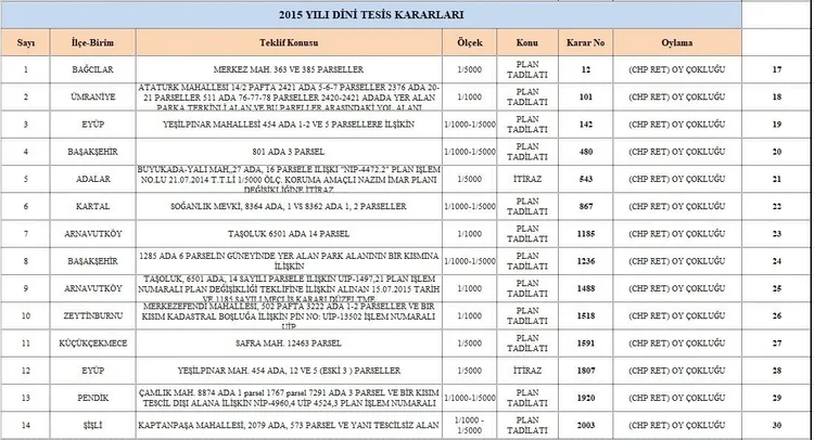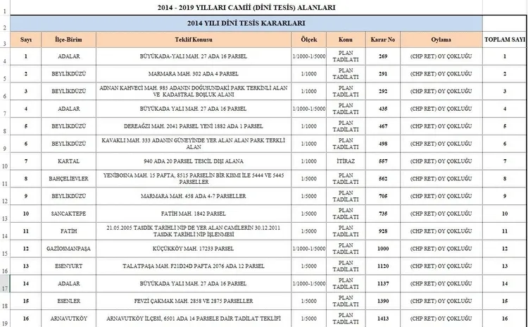 İŞTE CHP'NİN RET OYU VERDİĞİ CAMİLER