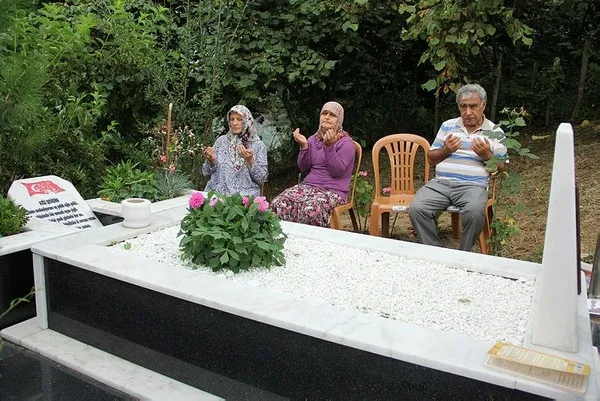 Mimiroğlu ailesi, şehidin mezarı başında dua ediyor.?