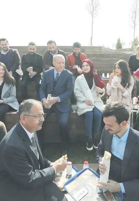 Başkan Erdoğan, Atakule'deki programın ardından öğle yemeği için terasa çıktı. Erdoğan, burada gençlerin yanına oturarak, birlikte dürüm döner yedi ve ayran içti. Gençlerle sohbet de eden Erdoğan, özçekim isteklerini geri çevirmedi. Erdoğan Atakule'den ayrılırken, kendisini bekleyen vatandaşların da yanına giderek, fotoğraf çektirdi.