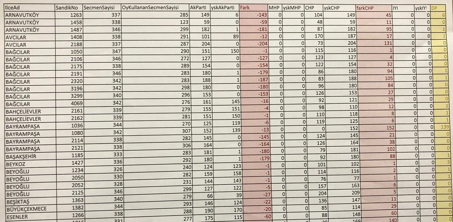 İstanbul Büyükşehir Belediye Başkanlığı seçiminde 309 sandıkta AK Parti’nin 17 bin 410 oyunun çalınması olayıyla ilgili yeni detaylar ortaya çıktı. AK Parti İstanbul İl Başkanlığı’nın tespitlerine göre, bazı sandıklarda AK Parti oylarının YSK kayıtlarına eksik yazıldığı belirlendi. AK Parti’nin oylarının eksiltilirken aynı sandıklarda CHP’nin oylarına binlerce ekleme yapıldığı anlaşıldı. AK Parti’ye eksik, CHP’ye ise fazla oy yazılan sandıklar Üsküdar, Zeytinburnu, Sultangazi, Pendik, Maltepe, Küçükçekmece, Büyükçekmece, Beşiktaş, Beyoğlu, Beykoz, Başakşehir, Bayrampaşa, Bahçelievler, Avcılar ve Arnavutköy ilçelerinde bulunuyor.