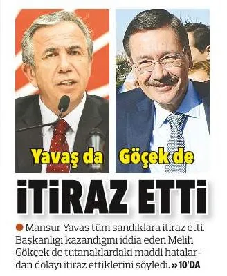 MANSUR YAVAŞ DA TÜM SANDIKLARA İTİRAZ ETMİŞ