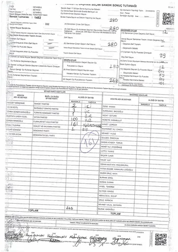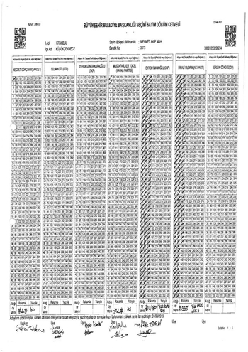 278 OY- Beykoz 1452 ve 1393 nolu sandıkmlarda Yıldırım'ın 161 oyu İmamoğlu'na yazılmış. Yine Yıldırım'ın 107 oyu, oy birleştirme tutanağına hiç geçirilmemiş.