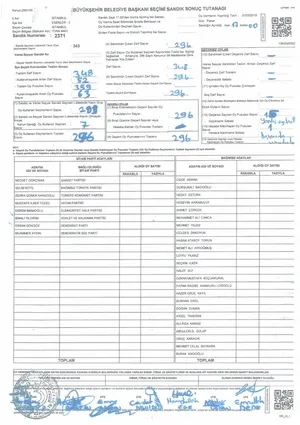 176 OY - Esenler 2371 nolu seçim sandık tutanağında 176 oy Yıldırım'a yazılırken, oy birleştirme tutanağında '0' gözüküyor.