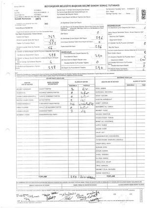187 OY- Gaziosmanpaşa 2301 numaralı seçim sandık tutanağında 189 oy Yıldırım'a yazılırken, oy birleştirme tutanağında 2 oy yazılmış. 187 oy gasp edilmiş.