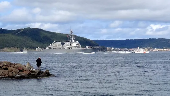 Akşam saatlerinde boğazdan Karadeniz istikametine geçiş yapan ABD savaş gemisine, Türk Sahil Güvenlik ekibi de eşlik etti.