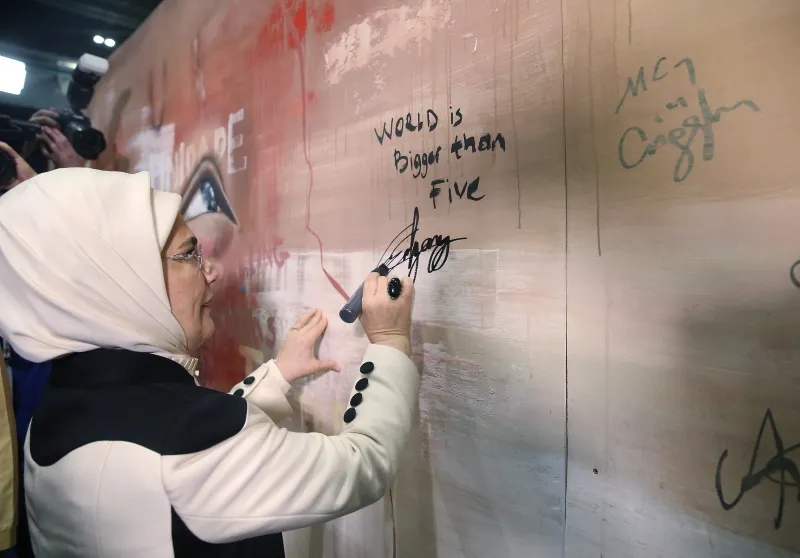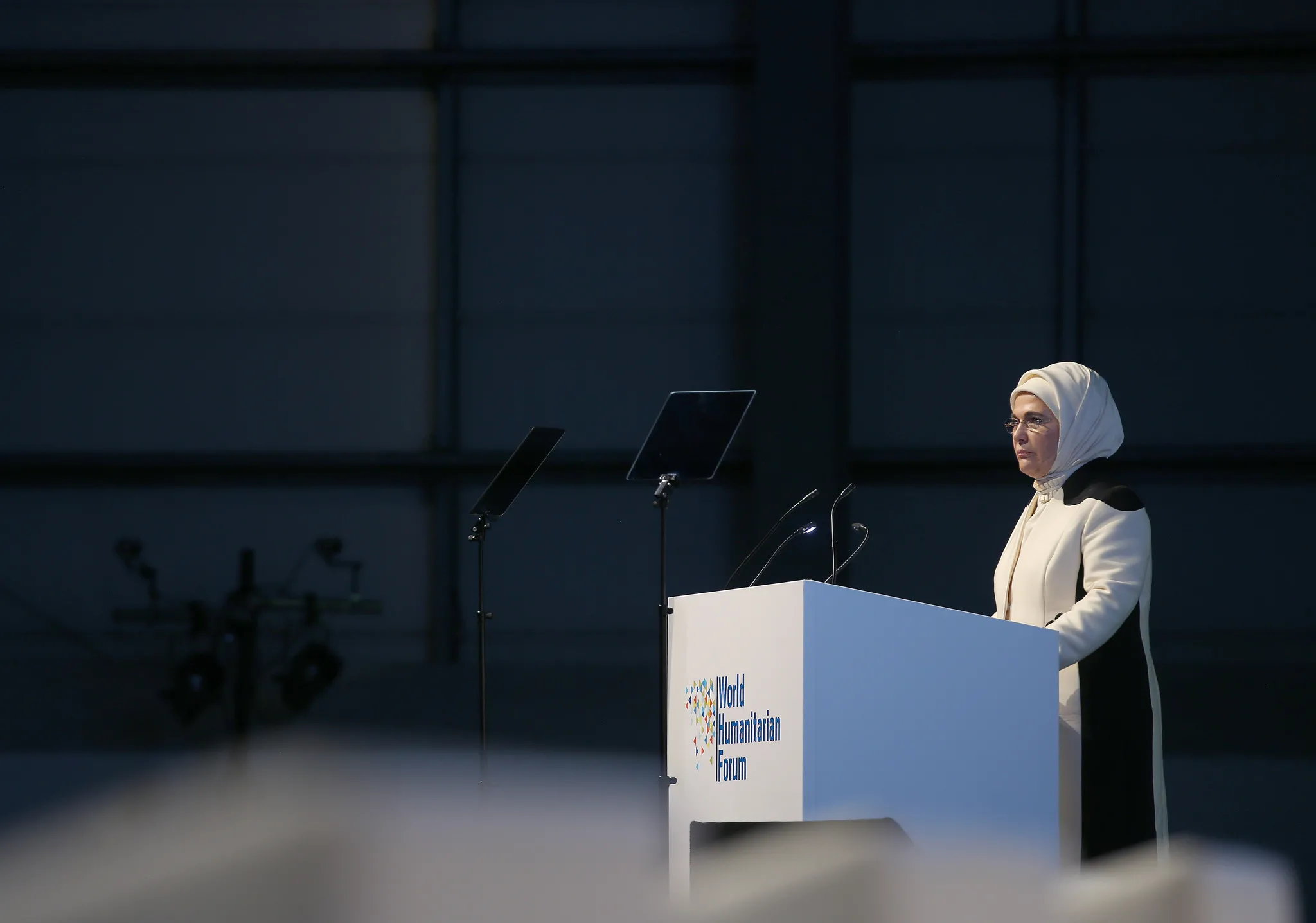 Türkiye'nin, devletin resmi resmi kurumlarının yanısıra, sivil toplum kuruluşlarıyla birlikte dünyanın en cömert ülkesi olarak anıldığını hatırlatan Emine Erdoğan, "Türkiye, gayri safi milli hasılaya oranla, dünyada en çok insani yardım yapan ülke konumundadır. Bu tavır, dünyada barışı ve istikrarı destekleyen proaktif Türk dış politikasının ayrılmaz parçasıdır. Bir mağduriyet gördüğümüzde gözyaşı dökmekten ötesini yapmamız gerektiğini biliyoruz" dedi.