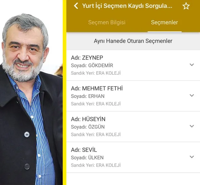31 Mart 2019 Yerel Seçimleri'nde oy kullanacakları adrese bakmak isteyen Hüseyin Özgün, E Devlet'te bulunan 'Aynı Hanede Oturan Seçmenler' bölümüne bakınca şoke oldu. Kendi ikametine kayıtlı eşi ve kızının yanı sıra hiç tanımadığı iki isimle daha karşılaştı.