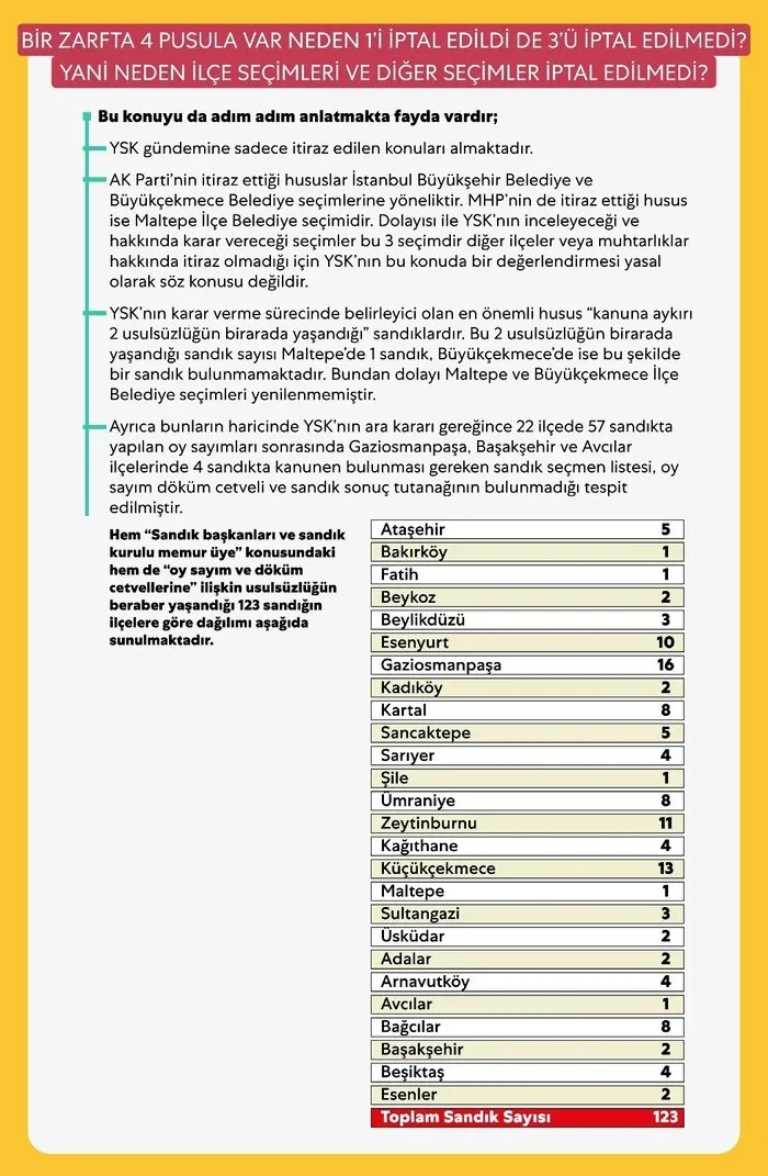 YSK neden İstanbul seçimini iptal ederken ilçeleri iptal etmedi?