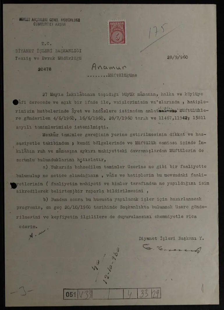 27 Mayıs ihanetini pulla, sigarayla, plakla meşrulaştırmaya çalışan cuntacılar, müftülüklerden “darbenin faziletlerinin” halka âyet ve hadislerle anlatılmasını istedi.