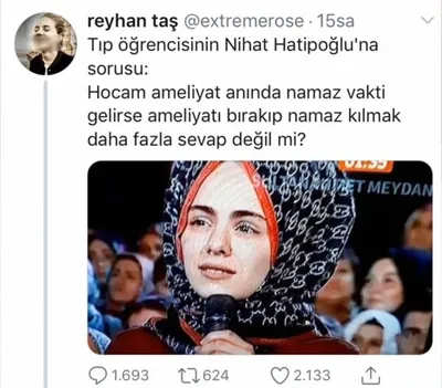 Genç kızın 'Bayanların bazen saçını mesh etmek yerine, ensesini mesh etmesi doğru mudur?' sorusunu 'Ameliyat anında namaz vakti gelirse, ameliyatı bırakıp namaz kılmak daha sevap değil mi?' sorusuna çeviren sosyal medya tetikçileri muhafazakarları hedef aldı.