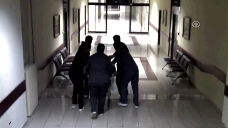 Saat 03.13'te sivil kıyafetli Ali Kapusuz'un ittiği bir sedyeyle taşınırken görülen Semih Terzi'ye bir doktor tarafından kalp masajı yapıldı.