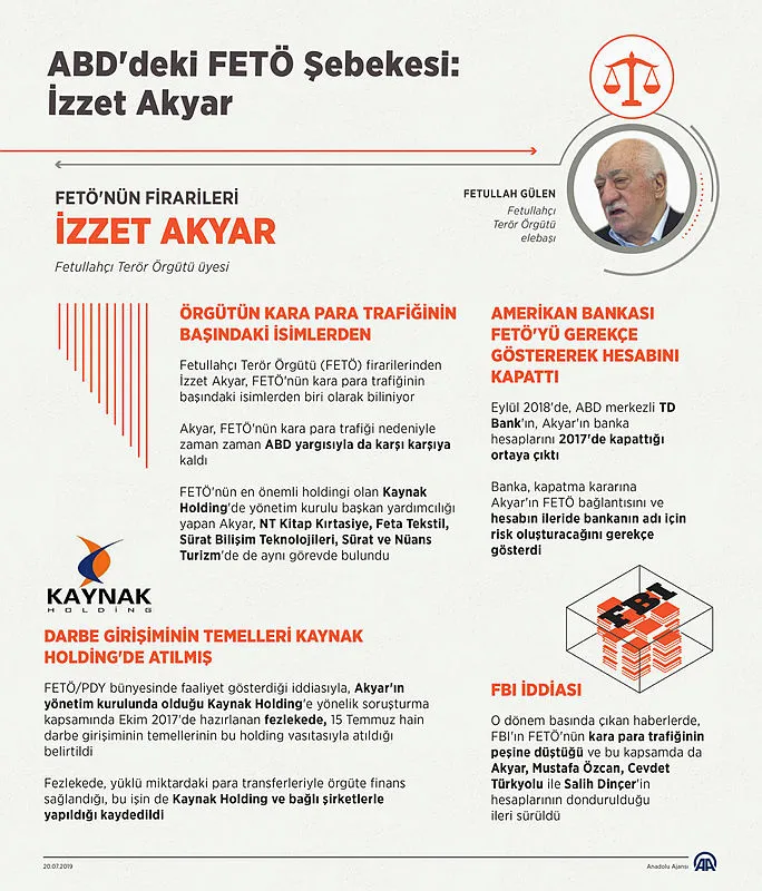 Fetullahçı Terör Örgütü (FETÖ) firarilerinden İzzet Akyar, FETÖ'nün kara para trafiğinin başındaki isimlerden biri olarak biliniyor.