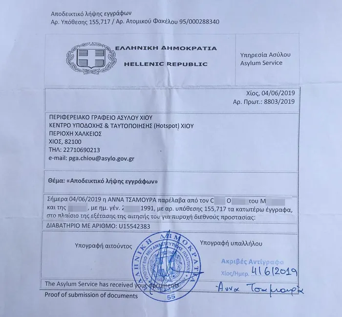 Sakız Adası'ndaki görevliler O.Ç.'nin işlemlerini jet hızıyla gerçekleştirdi. 3 gün içerisinde geçici kimlik kartı verildi ve iltica başvurusu onaylandı. Bu 3 gün içerisinde O.Ç. polis tarafından bir otelde misafir edildi. Bütün yeme-içme ve barınma masrafları polis merkezinde karşılandı. Eline geçici kimliği verilen O.Ç., Atina'ya yönlendirildi.