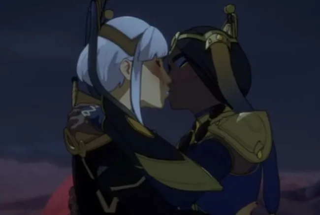 Bir başka örnek de; Netflix'in Ejderhalar Prensi adlı çizgi dizisinde ise lezbiyen kraliçe ikilisi yer alıyordu. Lezbiyen oldukları, uzun süre çocukların anlayamayacağı şekilde çok dolaylı şekilde ima edildi. Son bölümlere doğru ise bu lezbiyen çift öpüştürüldü.