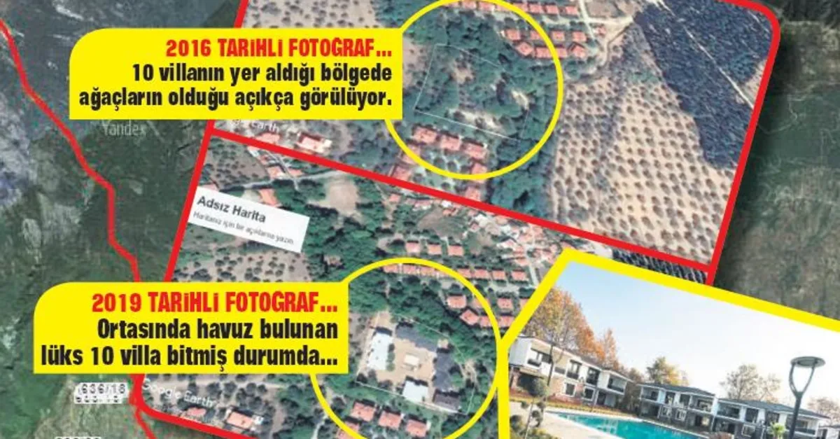 CHP'li İmamoğlu araziye üç yıl içinde 10 adet havuzlu lüks villa yaparken, bölgedeki CHP'li belediyeler ise buna 'Dur' demek yerine yol verdi.