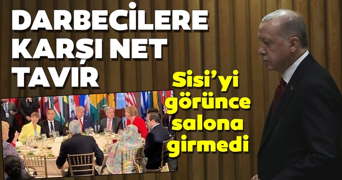 Başkan Erdoğan, Mısır'ın darbeci lideri Sisi'yi görünce salona girmedi