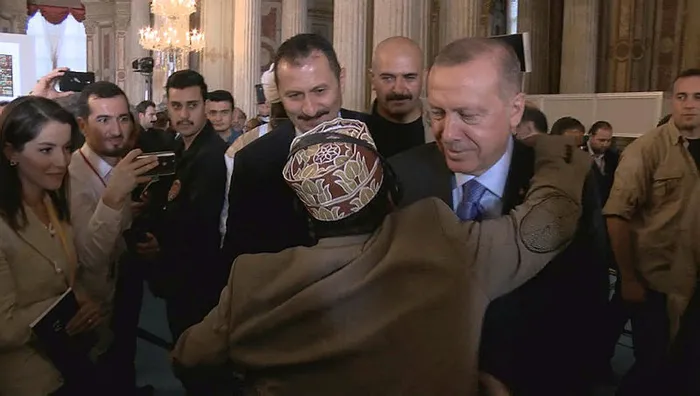 Cumhurbaşkanı Recep Tayyip Erdoğan, 3. Afrika Müslüman Dini Liderler Zirvesi'ne katıldı. Zirvenin ardından Erdoğan salonda çıkarken, konuklara tek tek selam verdi. Bu sıra bir konuk, Erdoğan'a eline uzatarak selamlaştı. Cumhurbaşkanı Erdoğan'ın elini bir süre sıkan kişi, bir anda sarıldı. Erdoğan'ın, sarılan kişi uzaklaşırken gülümseyerek "Çok kuvvetli" dediği duyuldu.