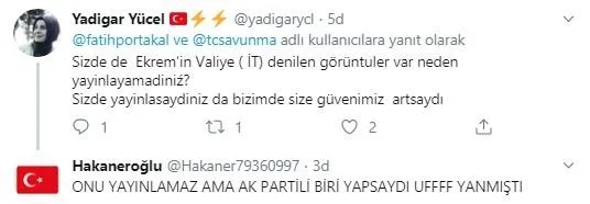 MSB'den İHA - SİHA görüntülerini istemesinin ardından Portakal'a bu olay hatırlatılarak, "Sizde de Ekrem'in Vali'ye (İT) dediği görüntüler var neden yayınlamadınız ? siz de yayınlasaydınız da bizim size güvenimiz artsaydı.