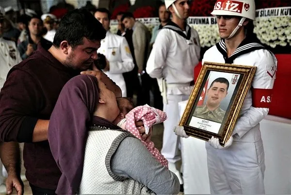 Şehidin cenaze töreninde Mersinliler akın ederken, törende gözyaşları sel olup akarken sinir krizleri geçiren aileyi yine protokol üyeleri sakinleştirmeye çalıştı.