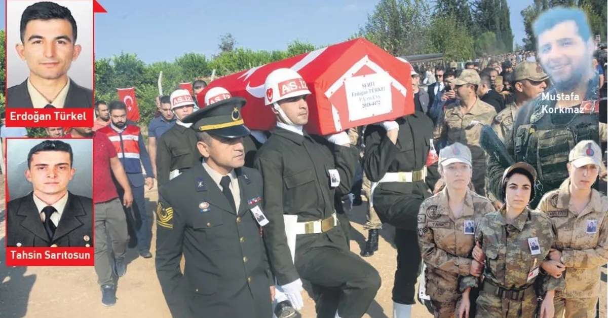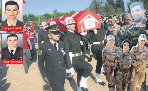 Barış Pınarı kapsamında Resulayn’da ve Hakkâri’de şehit düşen üç asker son yolculuklarına uğurlandı. Şehit Türkel’in kız kardeşi ağabeyinin kıyafetini giydi