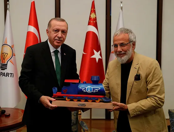Yusuf İslam, Cumhurbaşkanı Erdoğan'a "Barış Treni" şarkısıyla aynı adı taşıyan lokomotif maketini hediye etti.
