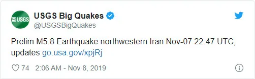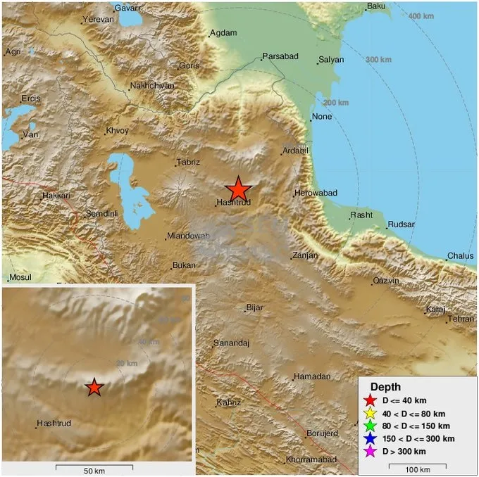 ABD Jeoloji Araştırmaları Kurumu, İran'da merkez üssü Heştrud kentinin 57 km kuzeydoğusu olan 5.9 büyüklüğünde deprem meydana geldiğini duyurdu. Yerel saatle 02:17'de meydana gelen deprem yerin 10 km altında oluştu.