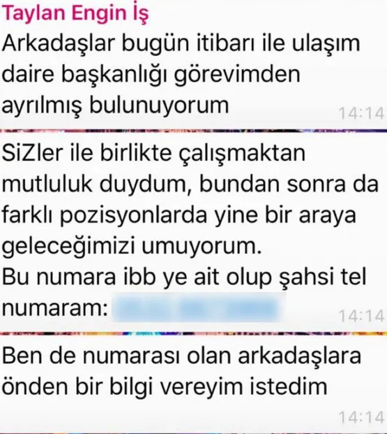 İstanbul Büyükşehir Belediyesi Başkanı Ekrem İmamoğlu’nun en önemli bürokratlarından biri olarak gördüğü İBB Ulaşım Daire Başkanı Dr. Taylan Engin görevinden istifa etti.