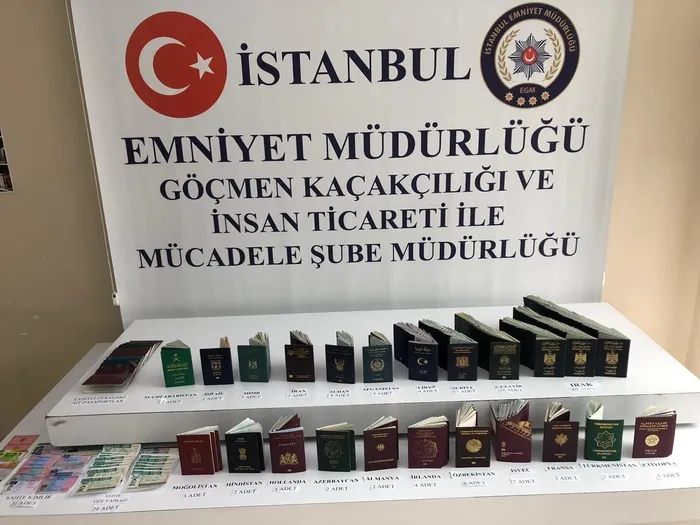 İstanbul Yeni Havalimanı'ndan sahte pasaportla yurt dışına çıkmak isterken yakalanan şahıslardan edinilen bilgiler doğrultusunda sahte pasaportların temin edildiği Fatih'te bulunan bir adrese baskın düzenlendi.