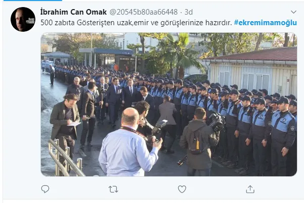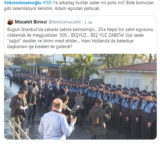 İBB Başkanı İmamoğlu'nun ziyareti sırasında yüzlerce zabıtanın adeta askeri düzende dizilip kendisini karşılaması büyük tepki çekti. Bazı zabıta personelinin İmamoğlu'na asker selamını andıran selam vermesi dikkat çekti.