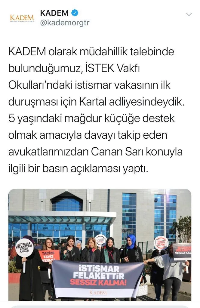 İstek Vakfı'na ait bir okulda yaşanan skandalın ardından devam eden dava ile ilgili yeni gelişmeler yaşanıyor. 5 yaşındaki bir çocuğa cinsel istismarda bulunulduğu iddia edilirken davanın en son görülen duruşmasının ardından büyük bir skandal da ortaya çıktı. İstek Vakfı tarafından cinsel istismarın olayının yaşandığı tarihteki görüntülerin silindiği ya da gizlendiği iddia edilirken, mahkemenin görüntüleri istememesine de davanın avukatı isyan etti. Avukat, Twitter hesabından yaptığı paylaşımda,"Hiçbir marka değeri 5 yaşında bir çocuktan daha önemli değildir! Bu davanın avukatı olarak önümüze örülen duvara karşı sizden mahkemenin sormadığı soruyu sormanızı ve sesimizi duyurmanızı istiyorum". dedi.