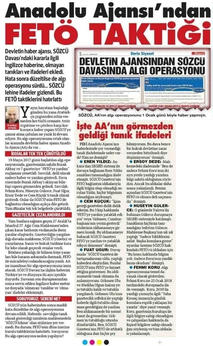 Fetullahçı Terör Örgütü (FETÖ) ile irtibatı ve iş birliği mahkeme kararıyla tespit edilmiş olan Sözcü gazetesinin ve bazı yazarlarının, kendi bilgi eksikliklerinden yola çıkarak Anadolu Ajansı'na ve Genel Müdürümüz Sayın Şenol Kazancı'ya yönelik pervasız saldırıları, suçluluk ve suçüstü yakalanma psikolojisinin çok açık tezahürüdür.