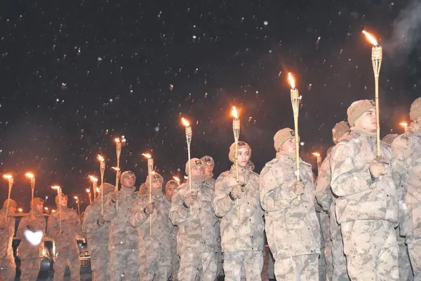Sarıkamış Harekatı'nın 105'inci yıl anma etkinlikleri kapsamında Kars'ın Sarıkamış ilçesindeki Kazım Karabekir Paşa Camisi'nde şehitler için önceki gece Mevlid-i Şerif programı düzenlendi. Cami çıkışında binlerce vatandaş, ellerinde Türk bayrakları ve meşalelerle Sarıkamış 15 Temmuz Demokrasi Meydanı'nda toplandı. Meydanda oluşturulan platformda şiir dinletisi ve ilahilerin ardından Erzurum Büyükşehir Belediyesi Mehteran Takımı yürüyüş öncesi türküler seslendirdi. Hava sıcaklığının sıfırın altında 10 dereceye düştüğü Sarıkamış'ta kar yağışı altında 10 bine yakın vatandaş 3 kilometre yürüyerek Yukarı Sarıkamış Şehitliği'ne geldi. Vatandaşlar, şehitlikte hazır bekletilen "Ruhunuz Şad Olsun" yazısını ellerindeki meşalelerle ateşledi.