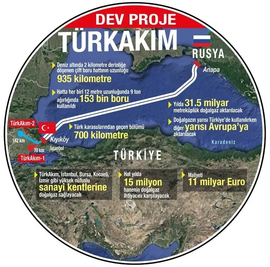 Türkiye, enerjide küresel aktör olma yolunda dev bir adım daha attı. Azeri gazını Anadolu üzerinden Avrupa'ya taşıyan TANAP'tan sonra, Rusya ile yürütülen TürkAkım projesi de hayata geçirildi. Başkan Erdoğan: Bize bir adım gelene çok daha fazlasıyla gideriz. Hakkaniyet ve saygı temelinde her türlü işbirliğine varız. TürkAkım, ülkemizin vizyonunun somut nişanesidir