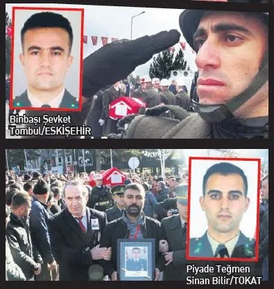 Tel Abyad’da hainlerin bombalı saldırısında şehit olan 3 askeri binler uğurladı. Binbaşı Şevket Tombul 6 ay önce baba olmuştu. Şehit Teğmen Sinan Bilir de bu yaz düğün yapacaktı