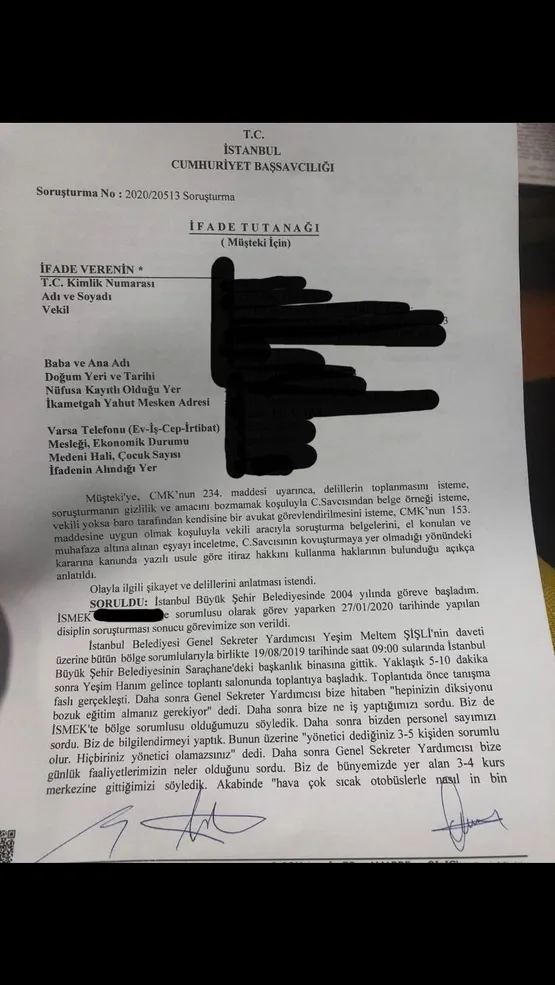 Sennur Gülenbay: Uzun yıllardır görev yaptığımız ve İstanbullu'ya büyük hizmetler sunduğumuz işimizden hiç hak etmediğimiz bir şekilde uzaklaştırıldık. Yapılan baskılar, uygulanan mobbing kesinlikle kabul edilebilecek bir durum değil. En azından insanlığa yakışmaz. Yapılan baskılara elbette ki bu süreçten sonra sessiz kalmayacağız. Hukuki haklarımızı sonuna kadar kullanacağız.