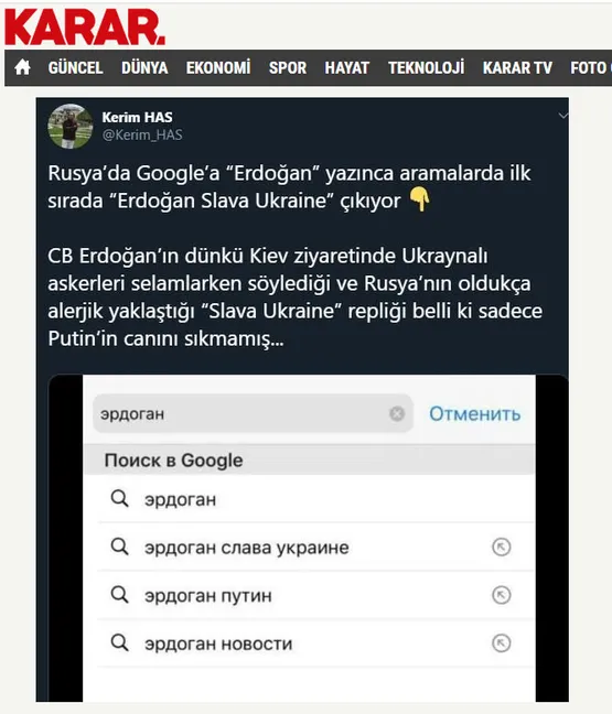 Türkiye'nin son Rusya ziyareti hakkında yaptığı Evrensel Gazetesi'ne verdiği görüşte "Türkiye'nin attığı adımlar büyük risklere gebe" dediği, Birgün Gazetesi'nde ise "İblib, Ukrayna ve Libya: Erdoğan'ın Kremlin'le tehlikeli tangosu" başlıklı bir makalede "Kremlin, Ankara'nın ev ödevini yerine getirmemesinden oldukça rahatsız", "Meselenin Ukrayna tarafı da var. Saldırı sonrası Kiev seferinde yaşananlar gerilimde işin tuzu biberi oldu. Tüm iyi ilişkilere rağmen iki ülke ilişkileri pamuk ipliğine bağlı" dediği görülüyor.