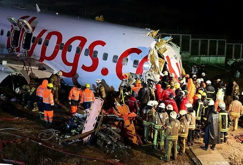 İtfaiye ve sağlık ekiplerinin de hazır bulundurulduğu olay yerinde, yoğun yakıt kokusu hissediliyor. 3 kişinin hayatını kaybettiği, 174 yolcu ve 6 mürettebatın yaralandığı kazada üç parçaya ayrılan uçağın enkazı, incelemelerin ardından vinç ve iş makinaları yardımıyla kaldırılacak. Öte yandan olaya ilişkin soruşturma da sürdürülüyor.