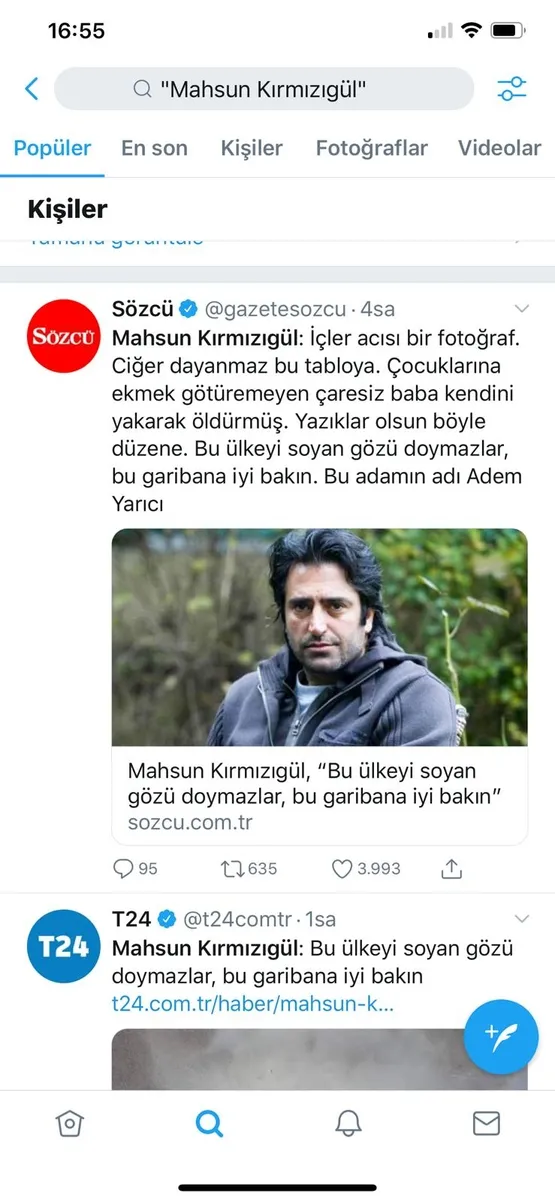 CHP medyası, Hatay’da valilik önünde Adem Yarıcı isimli bir şahısın ekonomik nedenlerle kendini yaktığını iddia etti. Sosyal medyadan hızla yayılan bu yalana sanatçı Mahsun Kırmızıgül de ortak oldu. Yapılan araştırmada Adem Yarıcı’nın “antisosyal kişilik bozukluğu raporu olduğu”, daha önce de intihara teşebbüs ettiği, devletten yardım aldığı, çocuklarının devlet tarafından okutulduğu, intiharın ekonomik nedenlerle olmadığı öğrenildi. Mahsun Kırmızıgül’ün gerçekliğini sorgulamadan yaptığı provokatif paylaşım, sosyal medyada tepki topladı.